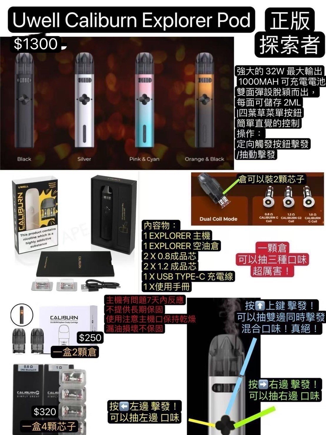 正版 Uwell Caliburn Explorer Pod 探索者主機咖哩棒 主機 成品芯 霧化芯 GZ2 GK2 G2 KOKO PRIME Uwell Caliburn Explorer Pod主機耗材