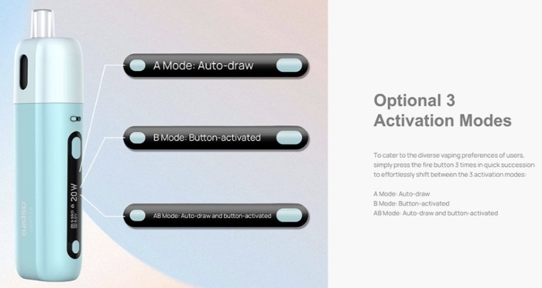 - 三種啟動模式: 支援自動吸氣、按鈕啟動以及兩者結合的啟動方式,靈活切換使用模式。