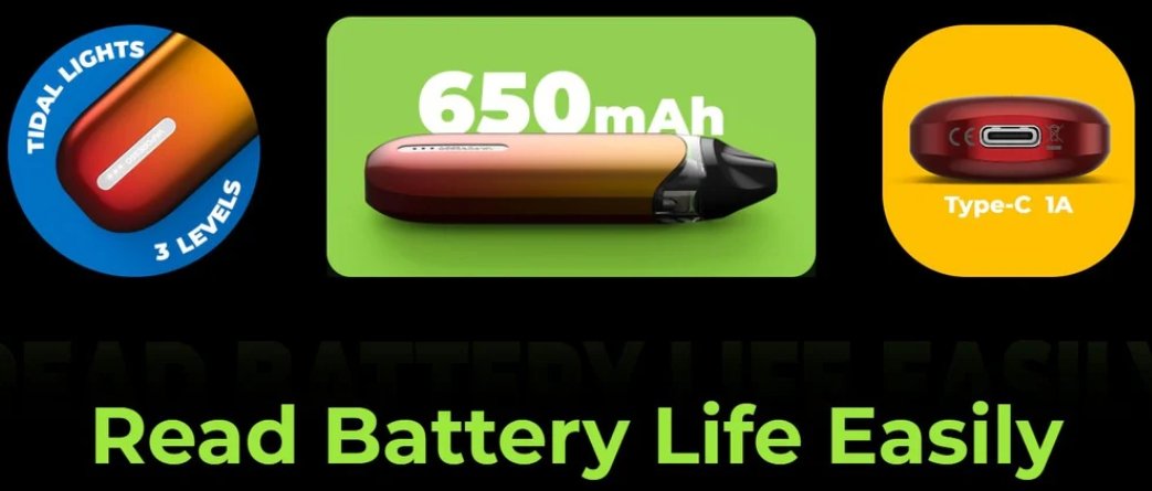這款電子煙配備了一個可充電的內置電池,容量為650mAh,可提供持久的電池續航力。您可以通過USB充電,方便快捷。此外,Zero S 還支持快速充電功能,讓您在短時間內充滿電。