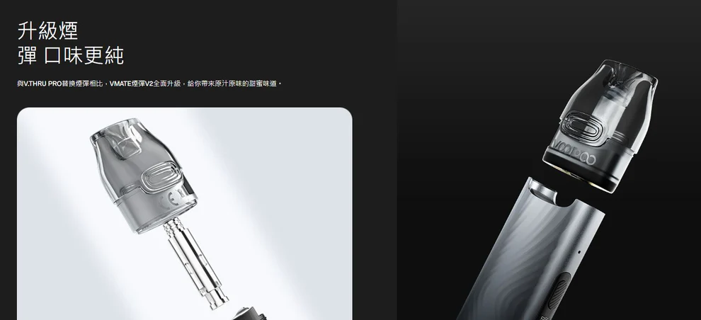 與V.THRU PRO替換煙彈相比,VMATE Cartridge V2進行了全面升級,為您帶來原汁原味的甜味。