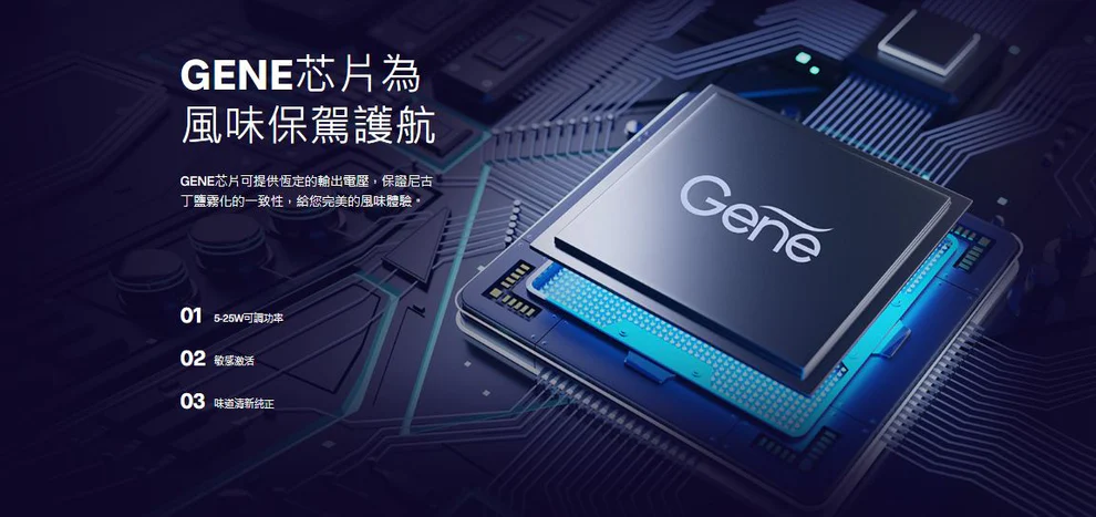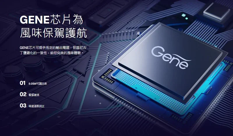 風味保駕護航GENE芯片可提供恆定的輸出電壓,確保尼古丁鹽霧化一致