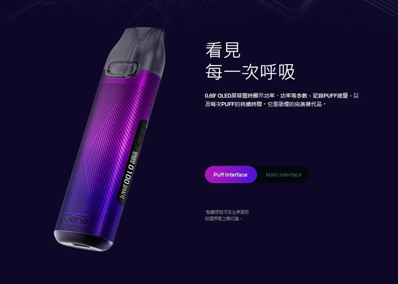 0.69′ OLED屏幕實時顯示功率和功率等參數,記錄PUFF總數,以及每個PUFF的持續時間。它是吸煙的完美替代品。
