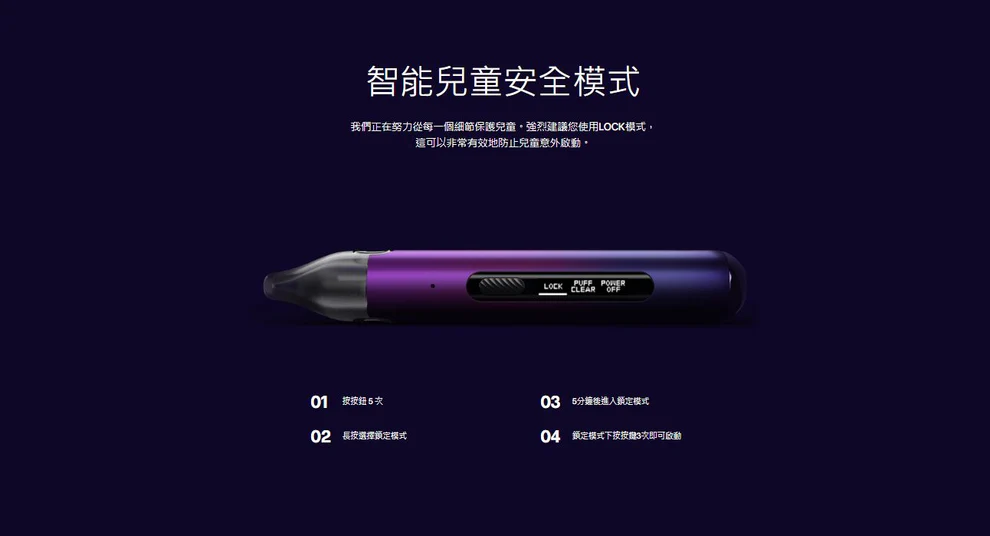 我們正在努力保護兒童的每一個細節。強烈建議您使用 LOCK 模式,這可以非常有效地防止兒童誤啟動。